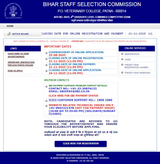 | ऑनलाइन आवेदन करने की अन्तिम तिथि | 27 नवम्बर, 2025 |